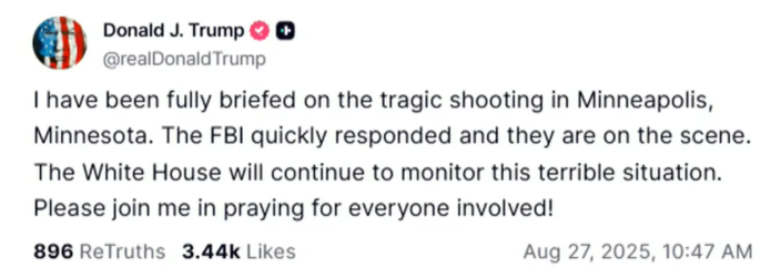 明尼苏达州州长Tim Walz也表示:“孩子们的新学年竟然是在血腥暴力中开始,我为师生们祈祷,政府会尽一切努力支持受害家庭。”