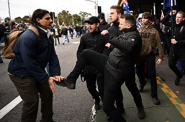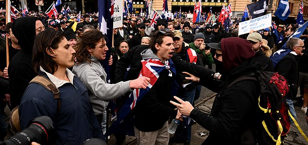 在墨尔本,反移民游行现场出现了用旗杆攻击对方示威者的暴力行为,并有人焚烧澳大利亚国旗,场面一度混乱。