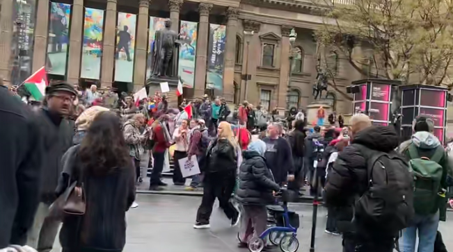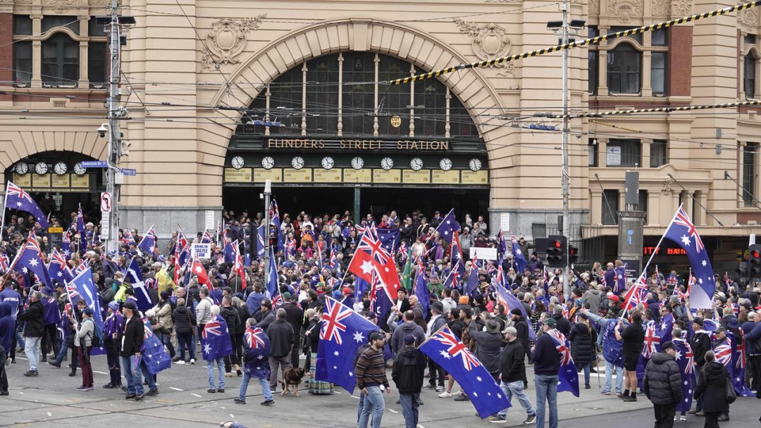 墨尔本街头同样人潮涌动,抗议者集中在Flinders Street Station外集结,准备沿街游行。
