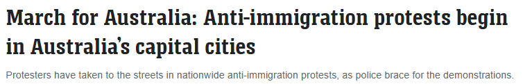 组织者称,这次游行旨在“结束大规模移民”,认为现行移民政策削弱了澳大利亚社会的团结。