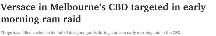 Versace此次遭劫事件,也再次凸显墨尔本CBD奢侈品零售店面临的安全挑战。