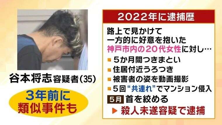 2022年,再次以同样手法进入神戸市另一公寓,掐住素不相识的年轻女性的颈部致伤,被以“杀人未遂”等罪名起诉。同年 9 月,神戸地裁判处其2年6个月徒刑、缓刑5年,也就是说,其目前仍在缓刑期内。