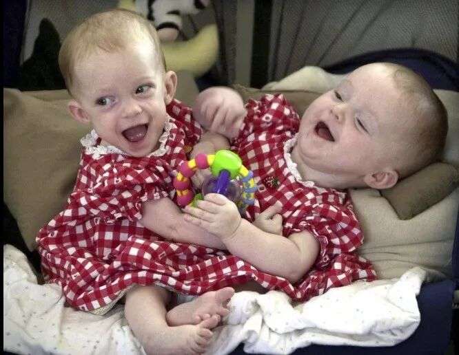 对比之前两个例子,像艾比和布列塔尼这样从头部以下共用身体的连体双胞胎,怀孕生娃还没有成功先例…