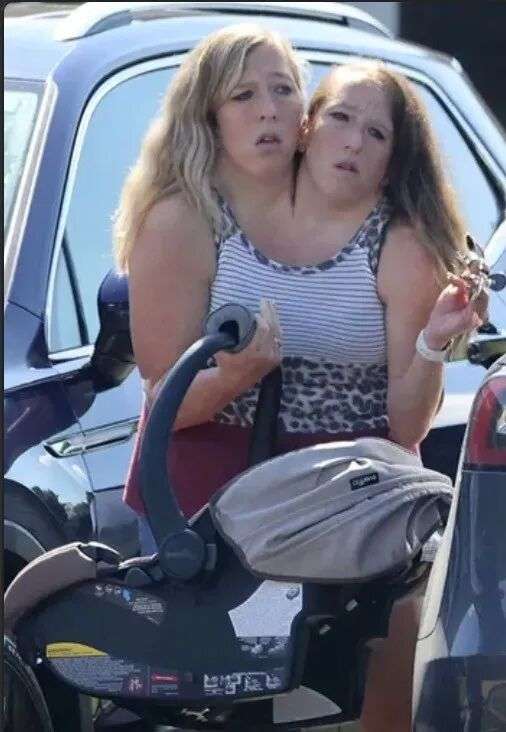 收藏美国连体双胞胎姐妹婚后成功生娃啦?! 带着小婴儿一起出门,大概是了...