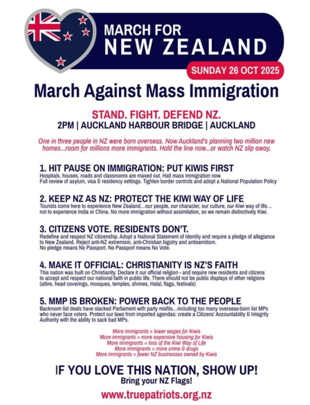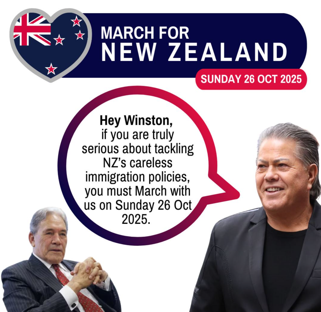 “嘿,Winston,如果你真的认真想解决新西兰草率的移民政策,你必须在2025年10月26日星期日和我们一起上街。”