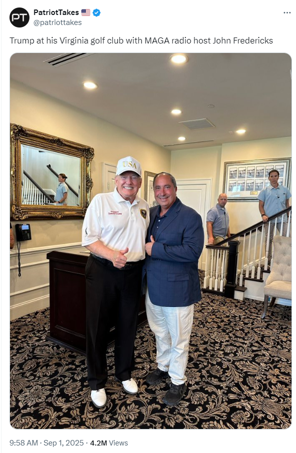 最后连Fredricks本人今天上午都跑来澄清:“照片是我妻子8月31日下午4点在斯特林的川普国家高尔夫俱乐部拍摄的,特勤局当时同意拍照。”