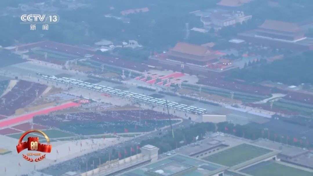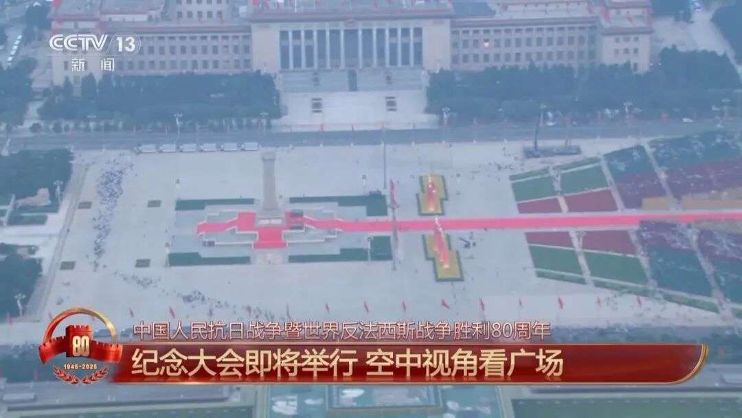 今天,广场上许多元素都体现了80,凸显纪念抗战胜利80周年的主题。