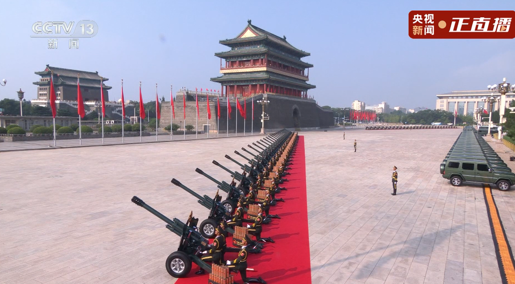 现场鸣80响礼炮,升国旗、奏国歌。