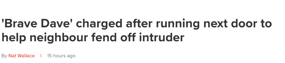 最近,《A Current Affair》报道了一则令人气愤的新闻:新州Gunnedah小镇66岁的卡车司机David Jamieson发现有一伙人深夜强行闯入邻居家。他不顾自身安危,在仅穿着一条内裤的情况下奋不顾身冲进邻居家帮忙。那晚,熟睡中的Jamieson突然被隔壁传来的尖叫声和吵闹声惊醒。他走出门廊一看,竟然有几名男子强行闯入了邻居家的后院,他们撬开了门上的锁破门而入。