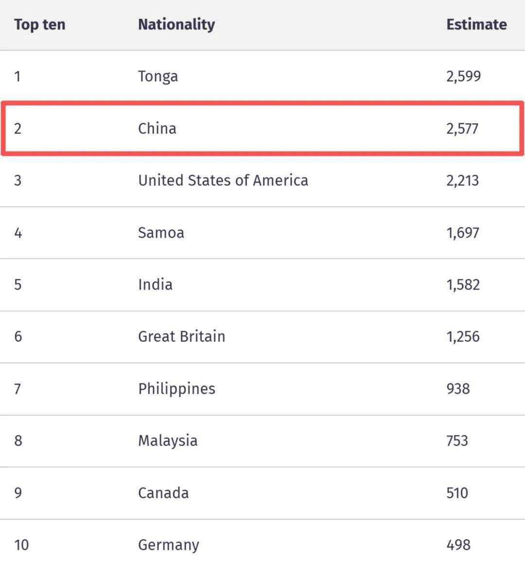 在官方今天公布的数字中,中国籍逾期居留者人数排第二,仅次于太平洋岛国汤加。