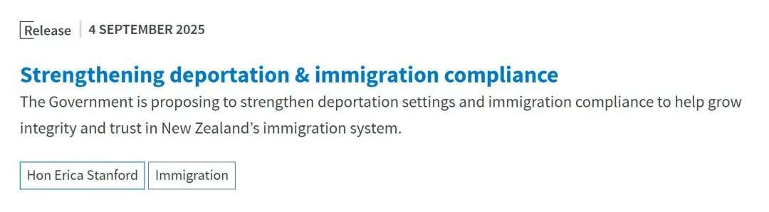 新西兰政府今天宣布,将严厉打击严重的移民违规行为。