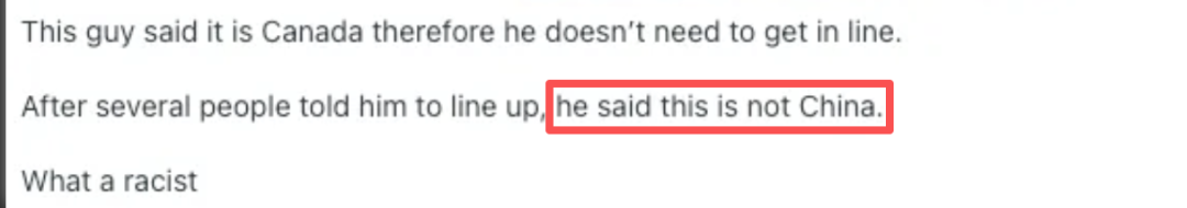 周围的人看不下去了,出声提醒,让他遵守规则,好好排队,结果老哥一句话回怼:我是在加拿大!不需要排队!
