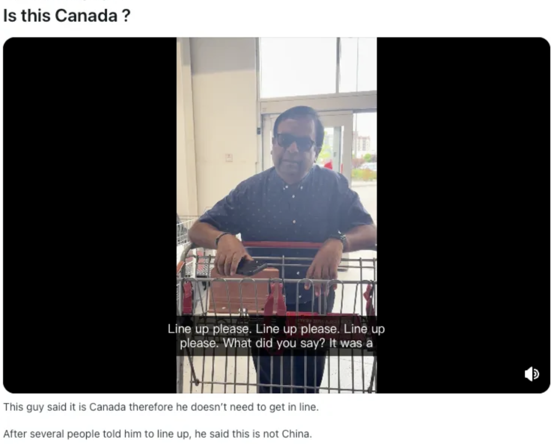近日,一个加拿大网友在社交媒体爆出的视频引起了不少人的关注——一个印度老哥去Costco买菜插队被骂,结果这人当场回怼:“这可不是在中国!”