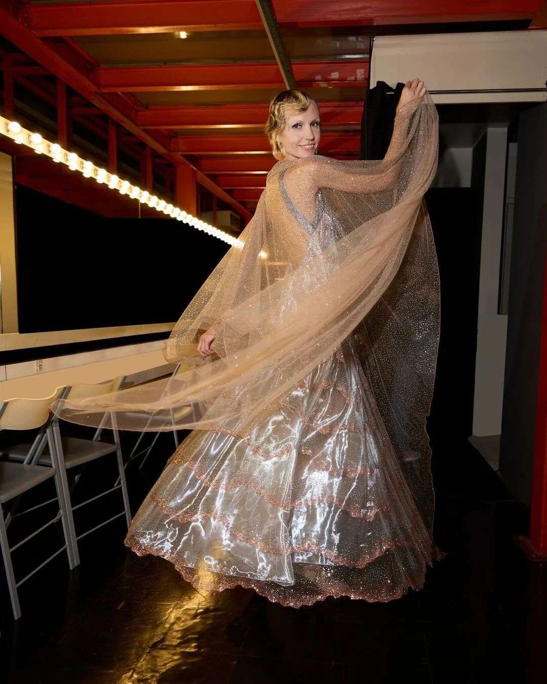从红毯的彗星银河裙,到表演的碧绿高叉衣,再到演唱会的圣斗士战甲。