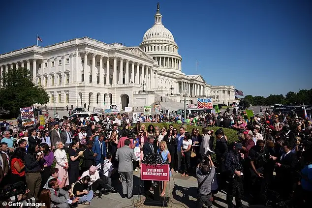 就在这关键时刻,十几位爱泼斯坦案的幸存者和家属集结在国会大厦前。