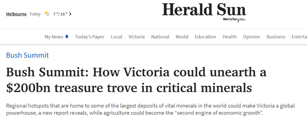 报告指出,维州多个地区——包括Wodonga、Seymour、Bendigo和Geelong等——拥有世界上最大规模的锆石、金红石、钛和稀土等关键矿产储量,有潜力将维州打造成全球经济强州。