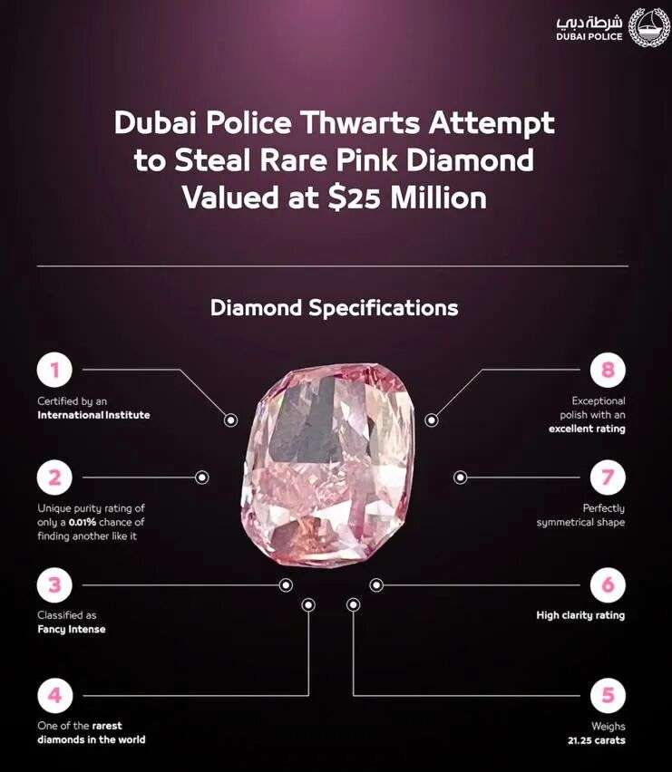 上个月,阿联酋迪拜发生了一起粉钻盗窃案。