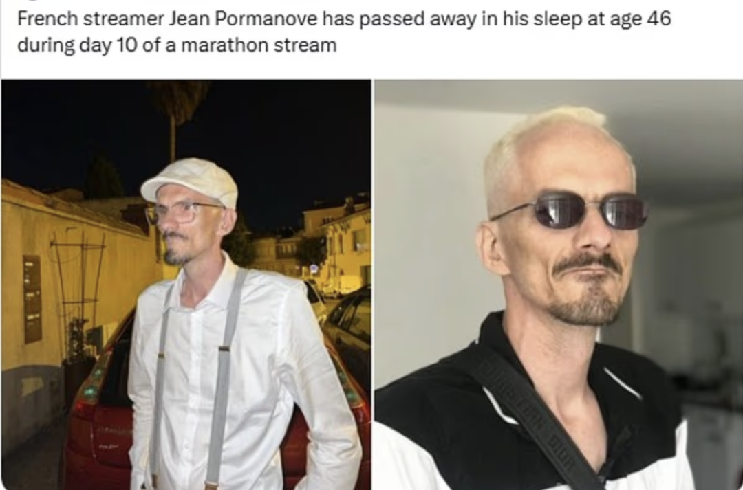 死亡的是46岁的让·波尔马诺夫(Jean Pormanove),这人现在算是法国的十分知名的网红。