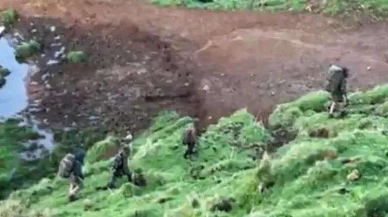四个人接着迅速消失在丛林当中,后来经视频辨认,四人被确定为Phillips和三个娃。