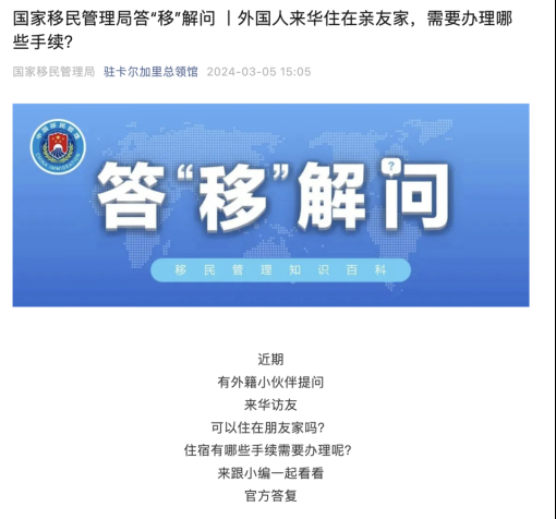 2024年3月5日,中国驻加拿大卡尔加里总领馆的官方公众号也转发了国家移民管理局的官方信息,再次强调了这一点。