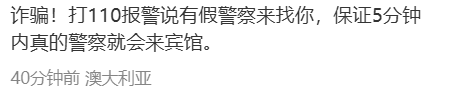 还有持有澳大利亚护照的网友表示,自己上次回国时,人还未落地,家里就已接到当地派出所的电话。