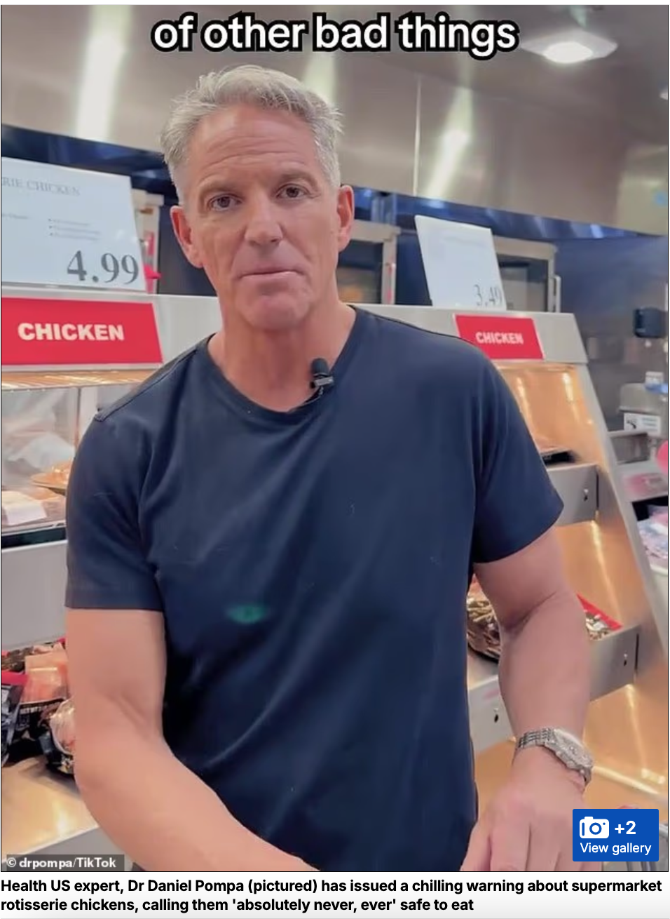 这位健康专家的警告其实并非空穴来风。其实,很多富裕家庭早已将超市的烤鸡从食品清单移除,其中还有一个更致命的隐患。