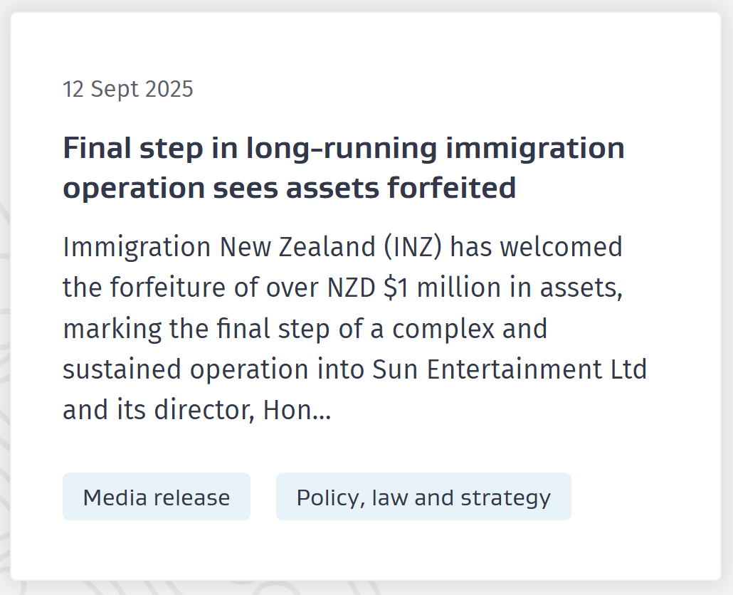 “我们对这一结果感到满意,并为移民局与新西兰警方等多个机构的合作感到自豪。”