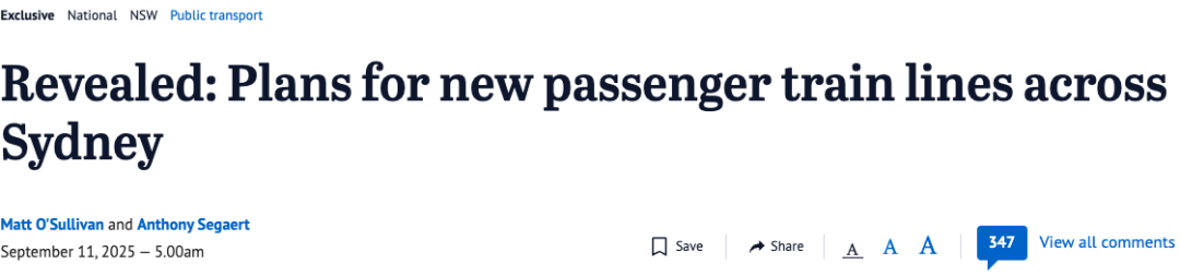 收藏内部文件泄露! 悉尼或迎多条新铁路线! 未来出行大变样