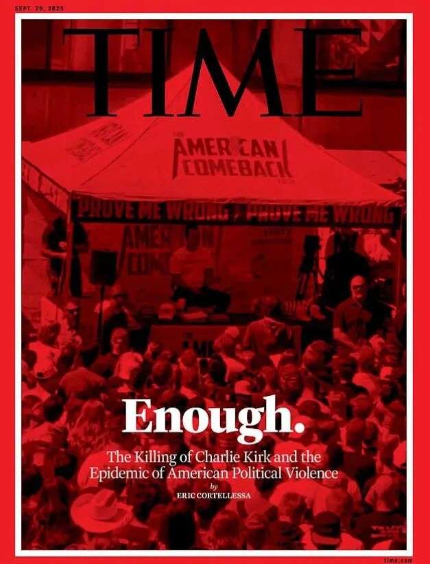 各大媒体争相报道,比如《时代》杂志今天就将封面改成血红色,题为《够了》谴责暴力...