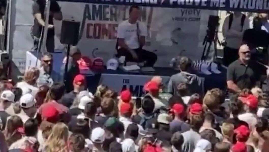 Kirk说太多了,有非常多枪击事件是跨性别者造成的......然后校园里居然真的响起枪声。