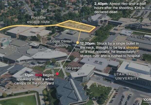 美国时间周三中午,Kirk在犹他谷大学发表演讲,据说大约有3000人参加了集会。