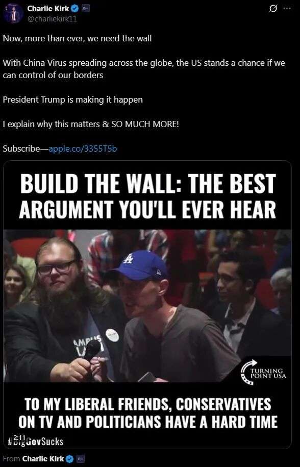就像许多保守派网红一样,Kirk在红的同时也具有相当的争议性,他经常散播一些貌似很有事实根据,但又完全禁不起细查的阴谋论。