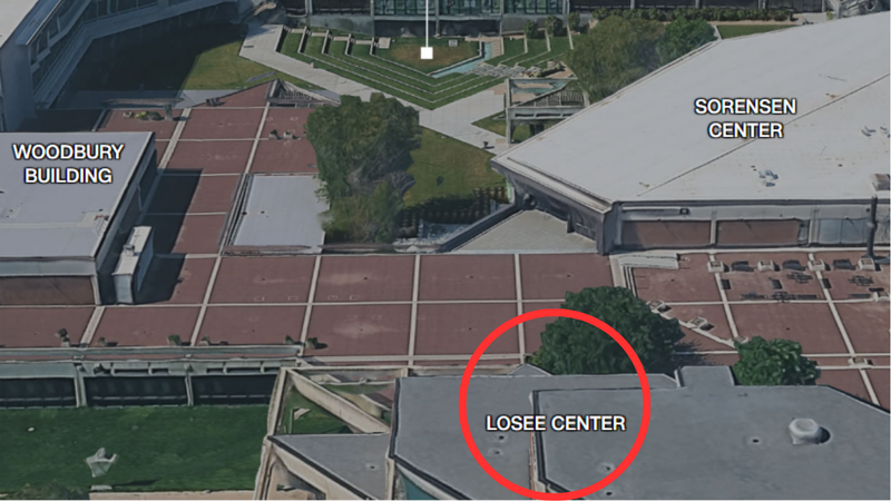 此时,枪手可能埋伏在离柯克位置约200码(180米)外的校园建筑物Losee Center上。