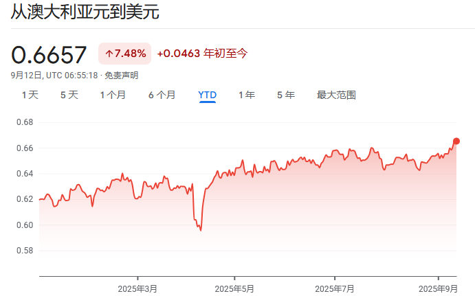 与此同时,澳元则显著走强,创下近段时间以来的新高。