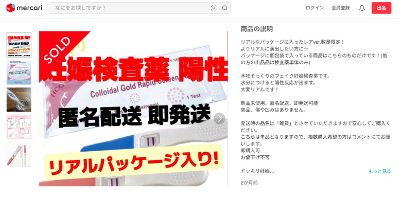 而让她谎言更有说服力的证据,就是从Mercari上购买的显示阳性的验孕棒。当然,如果再搭配上购得的胎儿B超照片,那简直事半功倍。