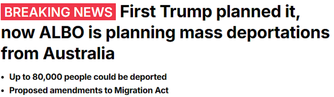澳洲总理阿尔巴尼斯计划驱逐80000非法黑民。
