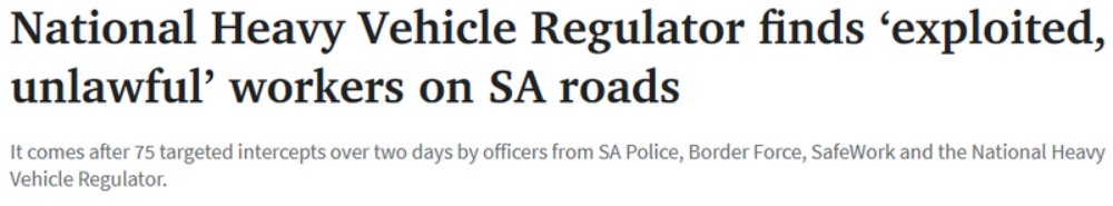 近期在南澳的一次重型车辆突击检查中,多名非法劳工被查获。
