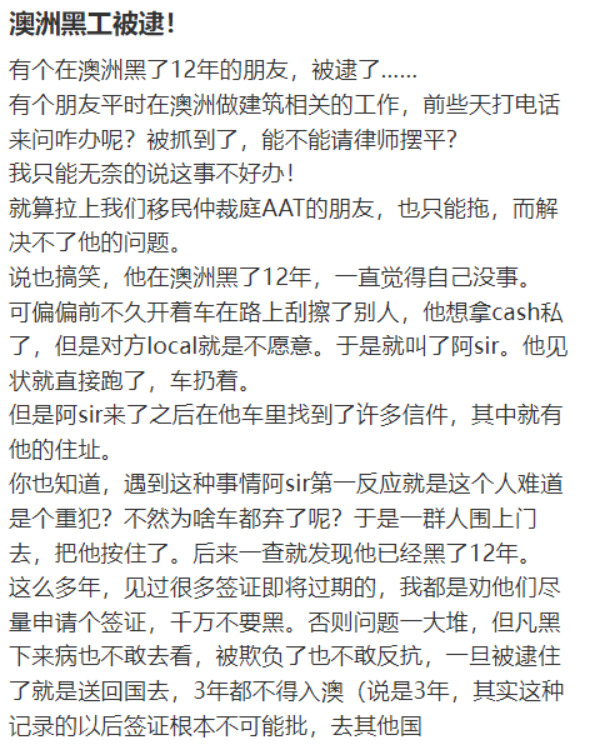还有一个在澳洲黑了12年突然被发现的例子 被移民局盯上!