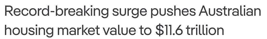 在今年首次降息后的几个月内,房产总值飙升了2130亿澳元。
