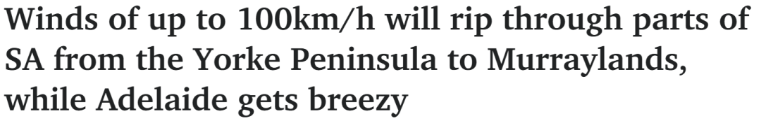 预计周一,南澳部分地区将迎来破坏性强风,阵风最高可达 100 公里/小时,阿德莱德则以微风为主。 气象局已向 Lofty Ranges、Yorke Peninsula、中北部、Flinders 和 Murraylands 等地区发布强风警告,预计强劲的西北气流将影响整天。 受影响区域包括 Port Pirie、Clare、Maitland、Murray Bridge、Port Wakefield 和 Victor Harbor。
