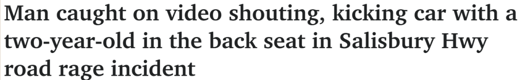 行车记录仪拍下Salisbury Hwy一起惊悚路怒事件,后座还有一名两岁儿童,受害者称“极度恐惧”。