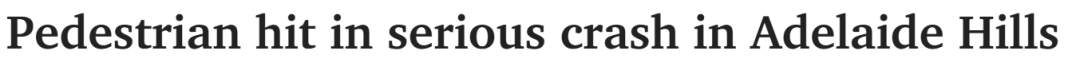 阿德莱德山发生严重车祸,一名行人被撞,情况危急。周一早上 7:11,警方和急救人员接到报告,赶赴 Oakbank 的 Onkaparinga Valley Rd。事故导致电线倒塌,整条道路封闭,驾驶者被建议绕行。