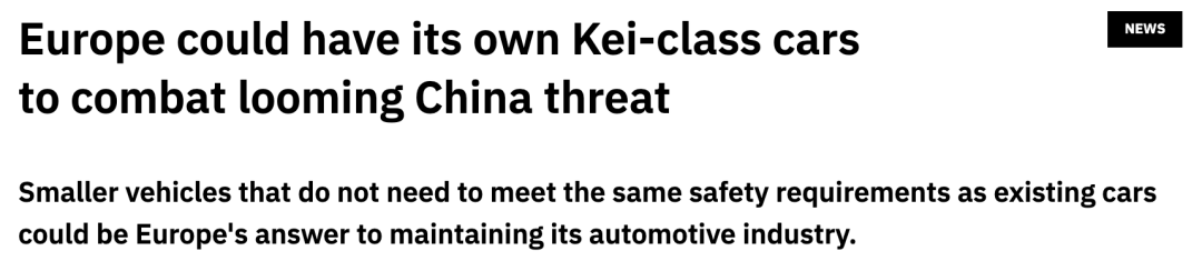 为了做到这一点,欧洲将目光放在了中国老头乐身上。但他们又不好意思直接说要做老头乐,于是声称,将“学习”日本Kei车(轻型车)范式。