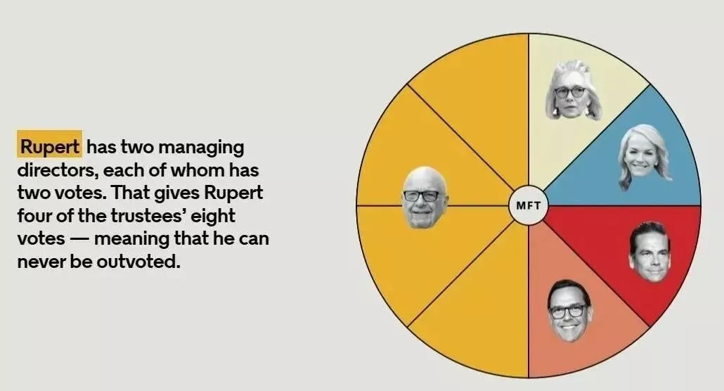 当前信托结构下,默多克本人拥有四票表决权,其他成员各有一票。