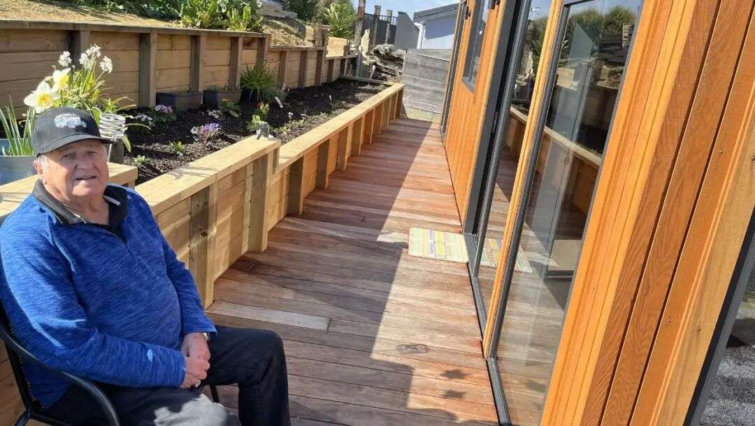 去年夏天,他把一栋小屋装到了女儿和女婿在塔斯曼Redwood Valle的山顶房产上。