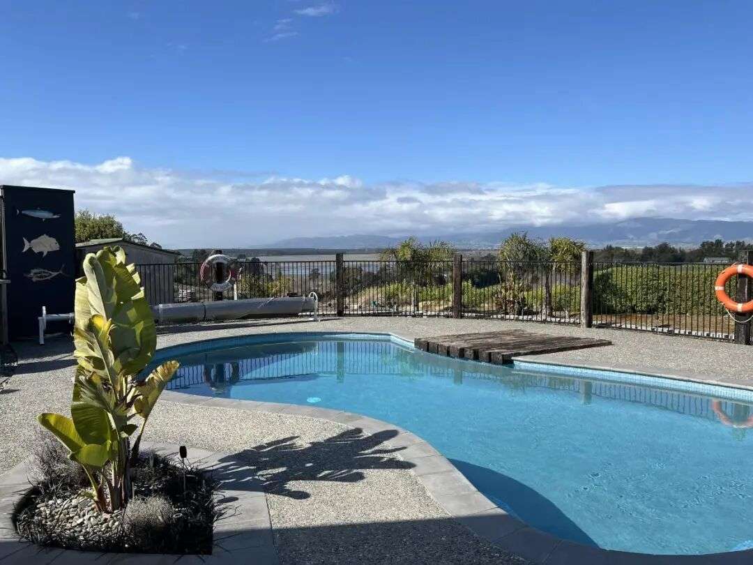 不过,他开玩笑说,真正让他过得舒服的原因是,隔壁就是家人的泳池、温泉和美式风格的泳池小屋,里面还有吧台,能眺望Moturoa Rabbit岛和Tasman湾的美景。