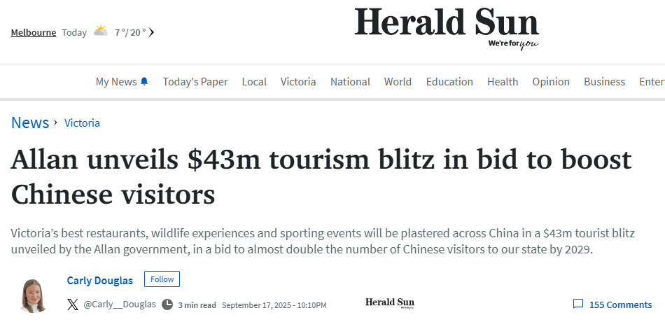收藏专门针对中国人!维州政府壕掷$4300万,要在中国干这件大事!