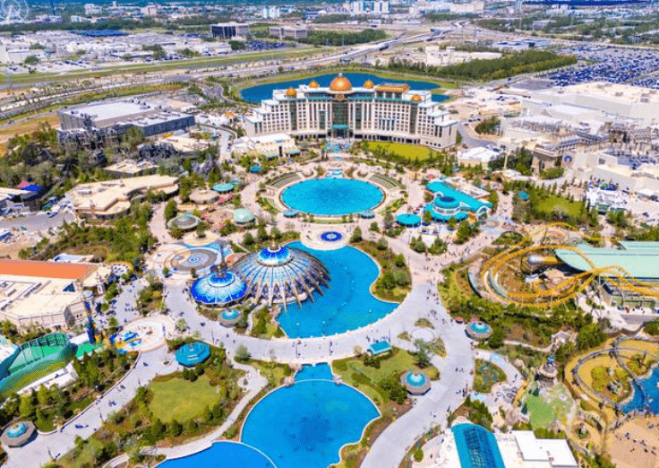 史诗宇宙园区总投资逾70亿美元,于四个月前正式开放。星尘赛车手为园区的旗舰云霄飞车设施,长约1.5公里,高达40.5米,采用双发射双轨道设计,两列列车可同时竞速,模拟彗星穿梭太空的高速体验,最高时速可达100公里,号称是园区内最刺激的项目之一。