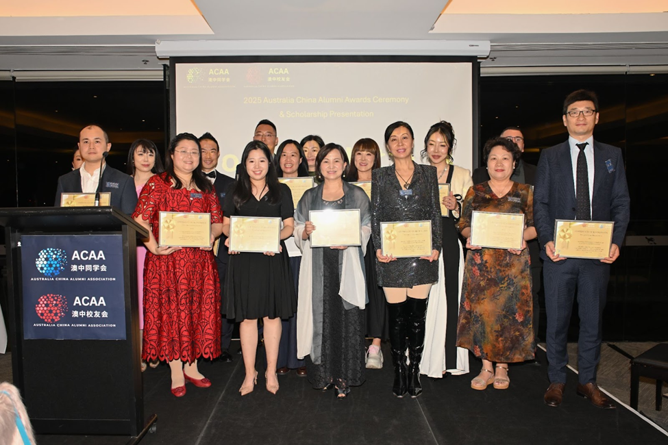 此外,多位学生奖学金得主也在典礼上接受表彰。由校友企业与高校代表共同颁发的总额40,000澳元奖学金,象征着代际传承与支持。另有三项杰出校友奖将于10月18日在北京典礼上揭晓并颁发。