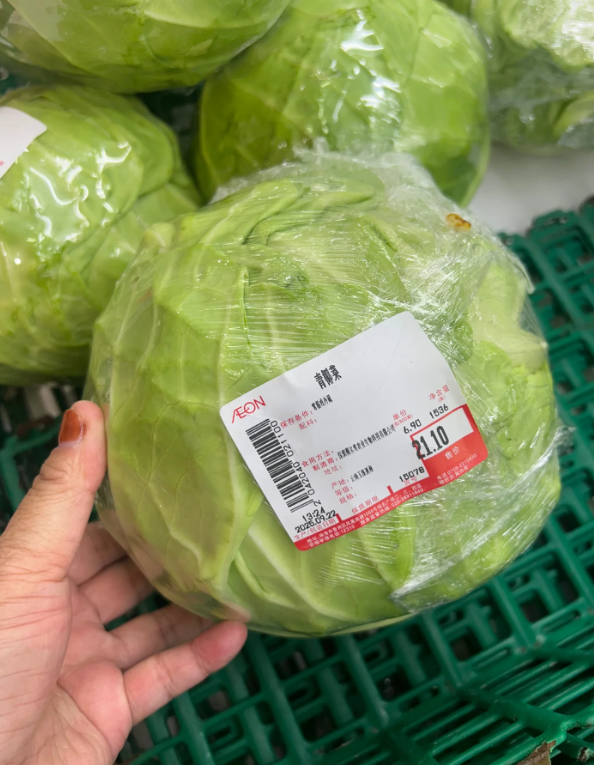 珠海也有网友发现,一颗普通包菜标价21.1元人民币。